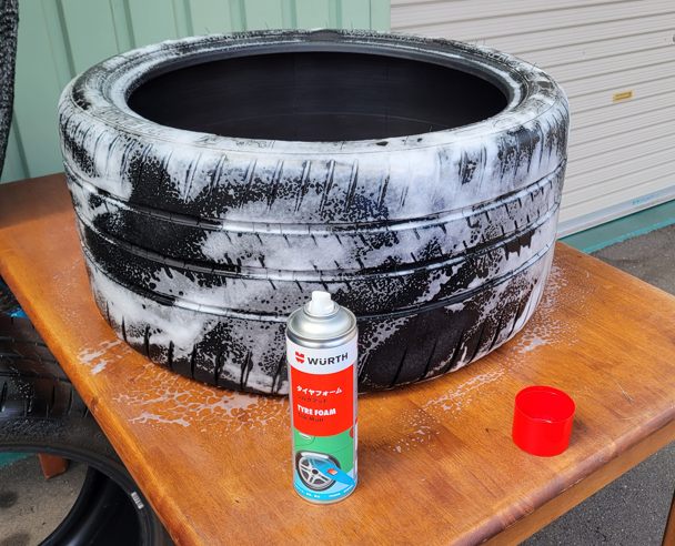 手に入れたGTヨンの中古タイヤ。当分出番は無いので……こんなことをしてみるテスト。取説にはトレッド面に使うなとありますが(笑) 劣化防止の効果があるならトレッド面こそ(笑) まぁこの程度でスリップしないでしょ。