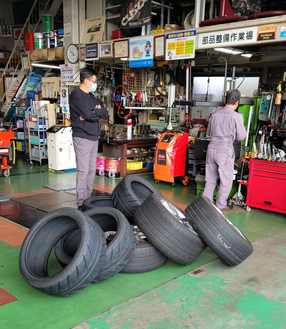 シバタイヤの組付けをお願いしてきました。普段はタイヤメーカー系のショップさんに頼むのですが持ち込みで19インチは嫌なんでしょう、法外な価格を提示されました。小山自動車さんがいくらなのかは不明ですが(笑)仮に同じ金額なら小山さんの方がキモチイイなと言うことで。