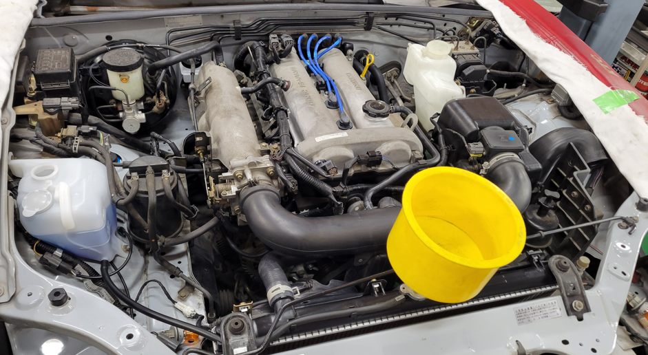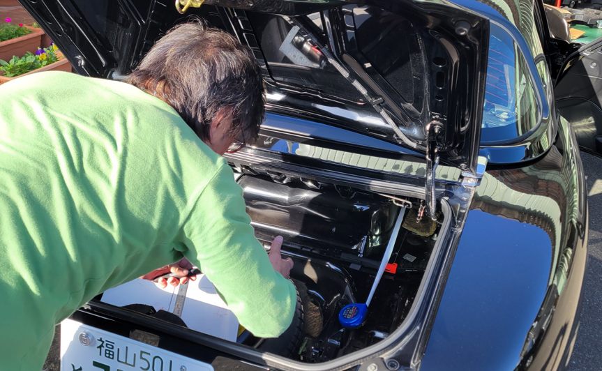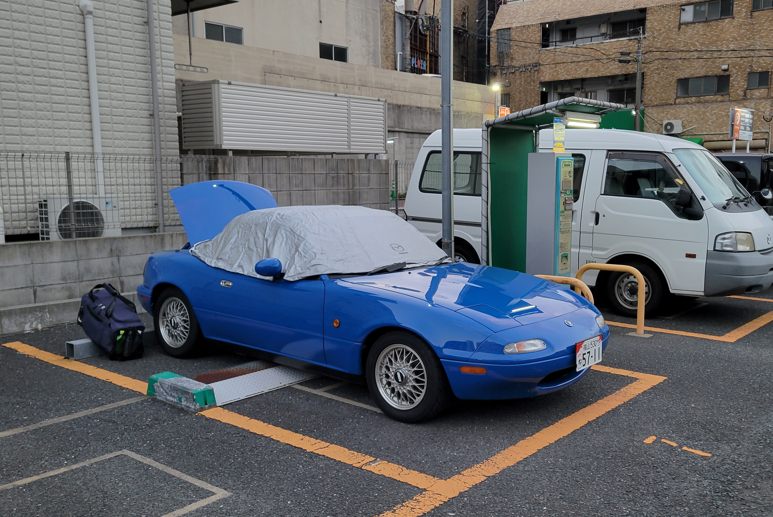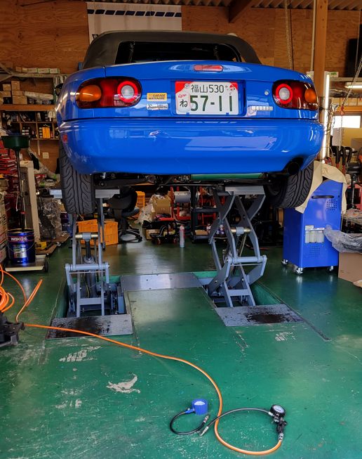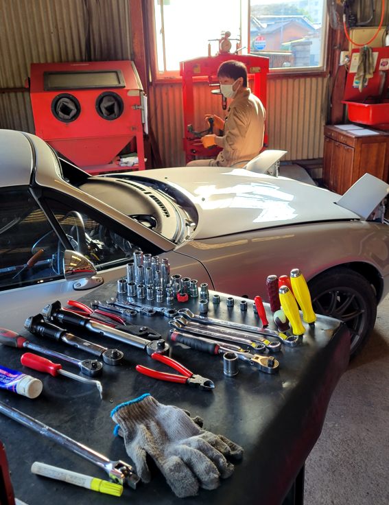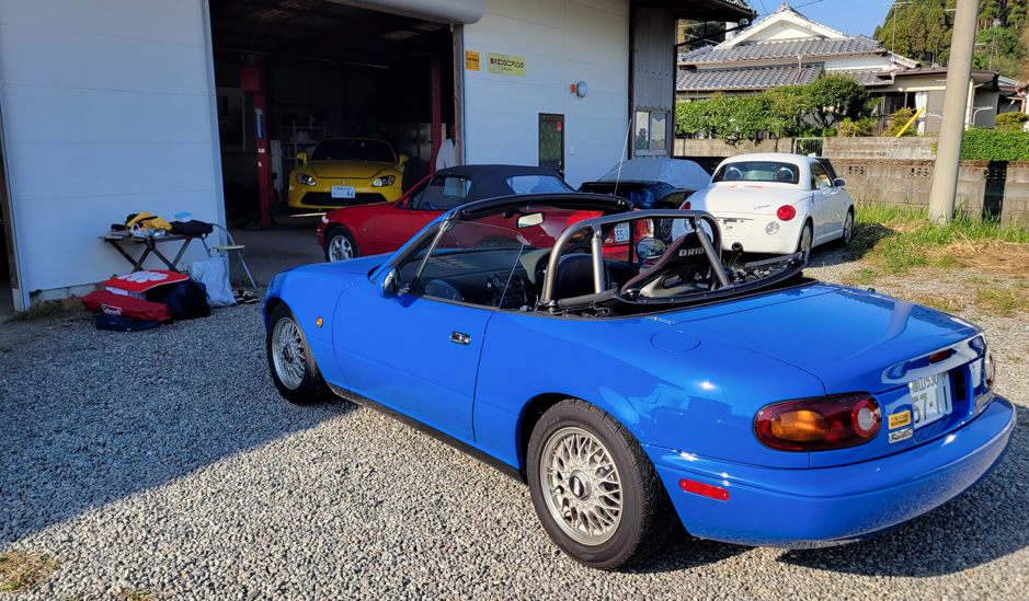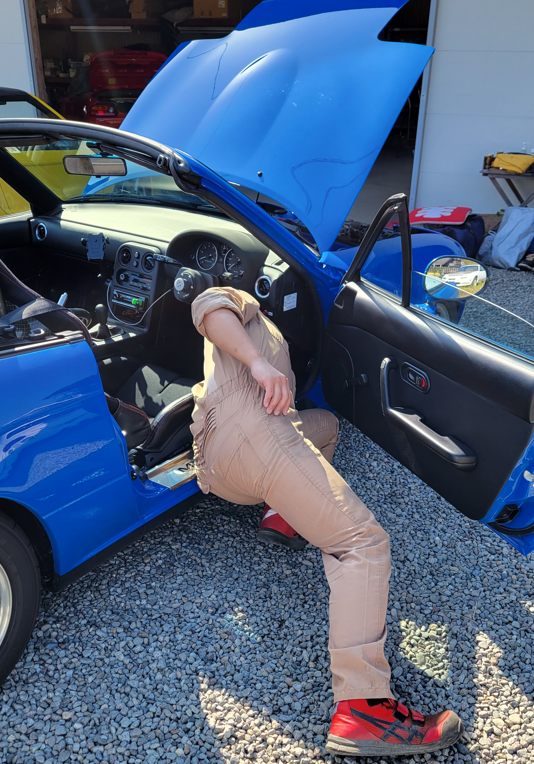 NBでロールバー付きのクルマを見たいと言うので知り合いの知り合い(つまり知らないヒト)に来て貰い……もう1台はクーペ。これはちょうど作業中なのでそのクルマを。