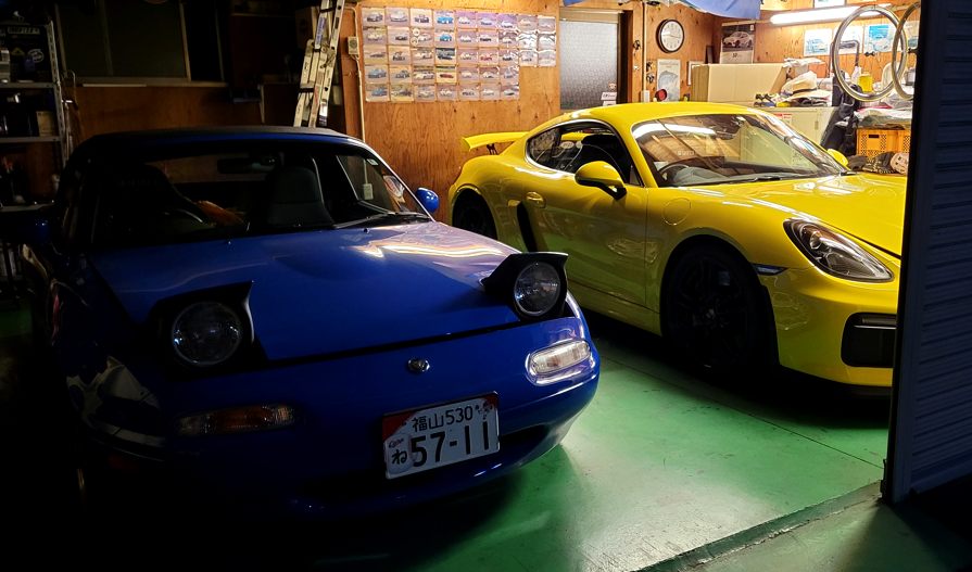 夕方、近所のヤジオガレージへ。私たちのガレージライフの原点の場所。20年以上変わらない景色(笑)