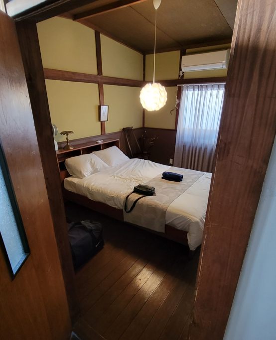 宿はコレです。いわゆるゲストハウスね。ユースホステルと似たような感じですよね。私が子供の頃の「乗り鉄」の旅での宿はほぼユースホステルでした、オカネ無かったし。あの頃は「ゲストハウス」なんてモノは無かった気が。