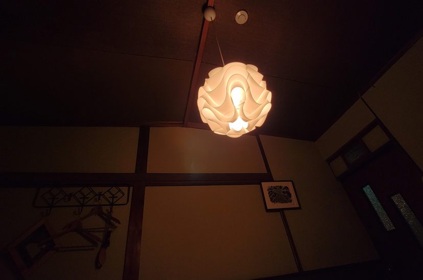 私の部屋の明かりはこれだけ(笑) 40Wの裸電球か? 本も読めない……何をしろと?(笑)