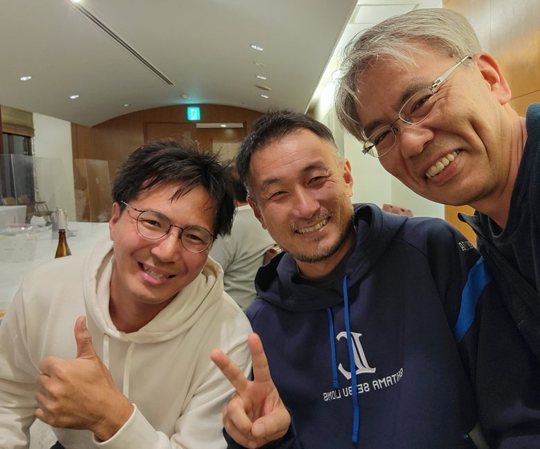 左はアウトデルタの森岡さん、ウチのエキマニを買ってくれたので声は聞いていましたが(電話で)会うのは初めて。中央は松元エンジニアリングの松元さん。こういう出会いが楽しいですよね。
