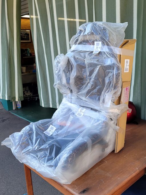 こんな梱包が許されることに驚き(笑) 配達してくれたドライバーは怒っていましたけどね……こんな梱包で何かあったらどうするんだって……関東の某支店の基準が緩いのでしょう。(座面下のプチプチはオーナーさんが処理、あとは某支店の作業らしい……背中に段ボール貼るだけかよ・笑)
