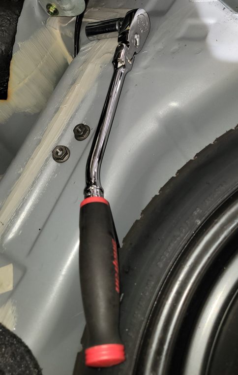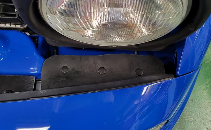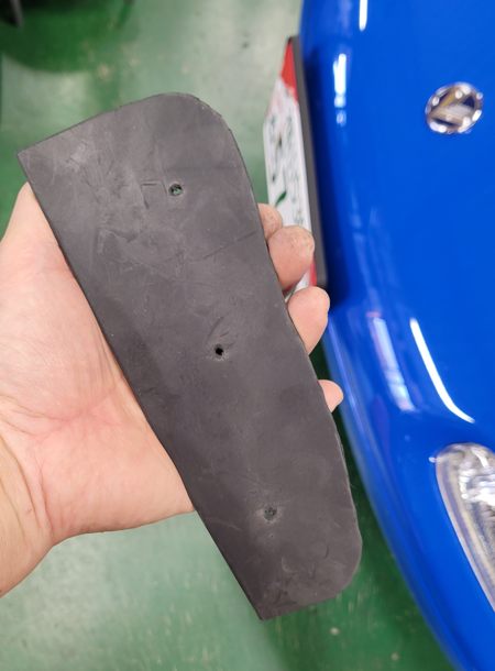 実はこのクルマ、まだ未完成な部分がありまして……ココもその一つ。役目はよくわからないけどゴムのシートがあるんですよね。廃盤なのでホームセンター買ったゴムのシートの余りをハサミでチョキチョキ。