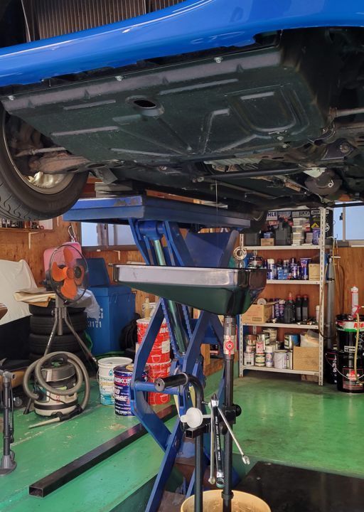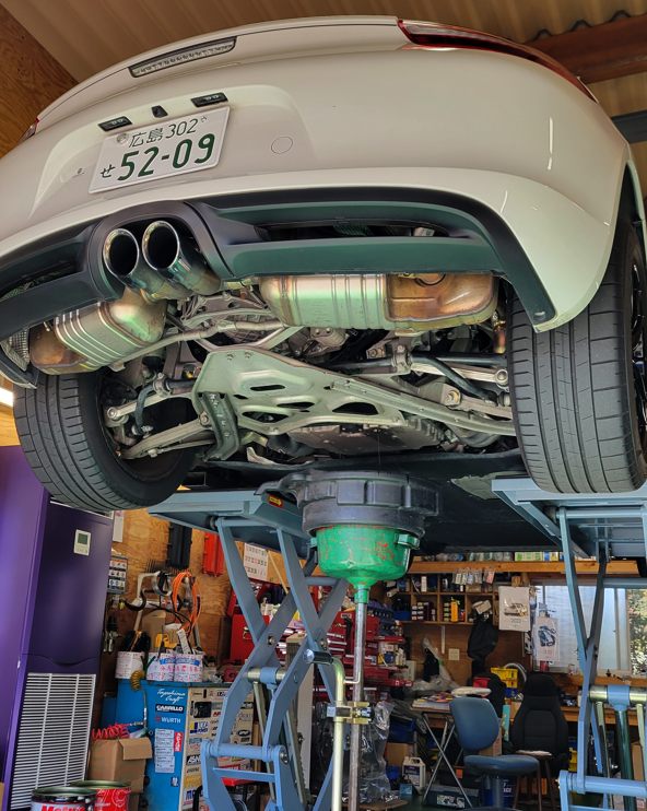 リフトアップして下回りの点検、タイヤのエアを確認、ホイルナットの締めの確認、エンジンオイルの確認。