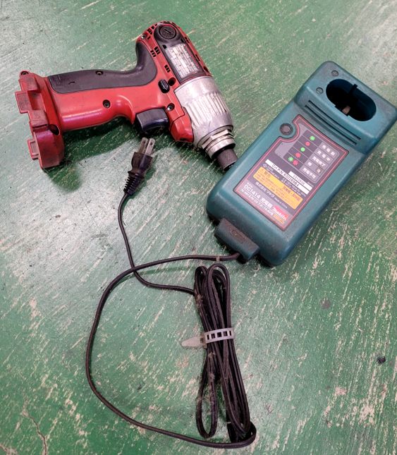 10年くらい使ったかな……電動インパクトドリルです。6角のビットを入れるヤツね。何個目かのバッテリーが死んで……もうそろそろ新しいのに変えようかなと。