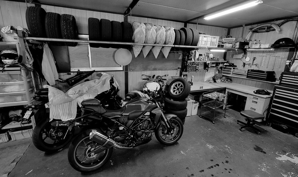 空いた物置にはガレージにある中古部品を入れようかなと……