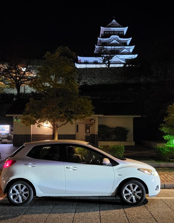 今回はウチの奥さんに送迎をお願い……ヤマグチさんは福山城が見えるホテルへ。ライトアップしていましたね~