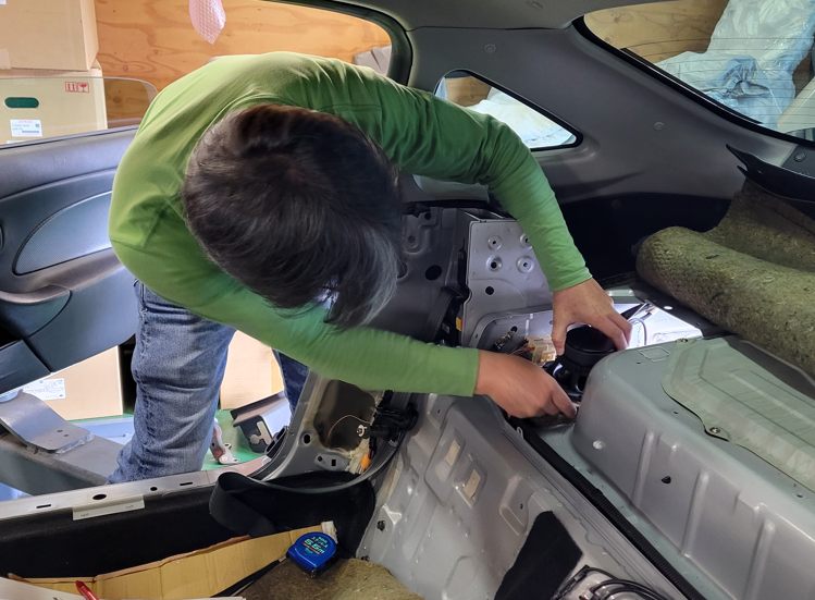 NB用のサブウーハーの形状を決めるために採寸をしに来ました。取材で九州に行っていたのでその帰り道の途中に寄ったと言うこと。
