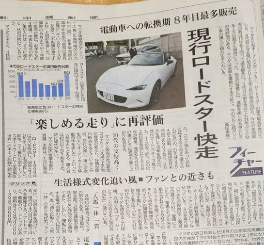 今日、ふと目に留まった記事。NDが今、売れているらしい。8年目なのに!ただ……何を基準とするのかで見え方は変わりますよね。私はNAの時代のヒトなので……あの頃が基準なんです。ネットで調べた数字ですがNA6が5年で8万台、NA8が4年4万台、NBが7年で3万台、NCが9年で2万台弱売れたらしいです。NDは現在進行形で5万台。