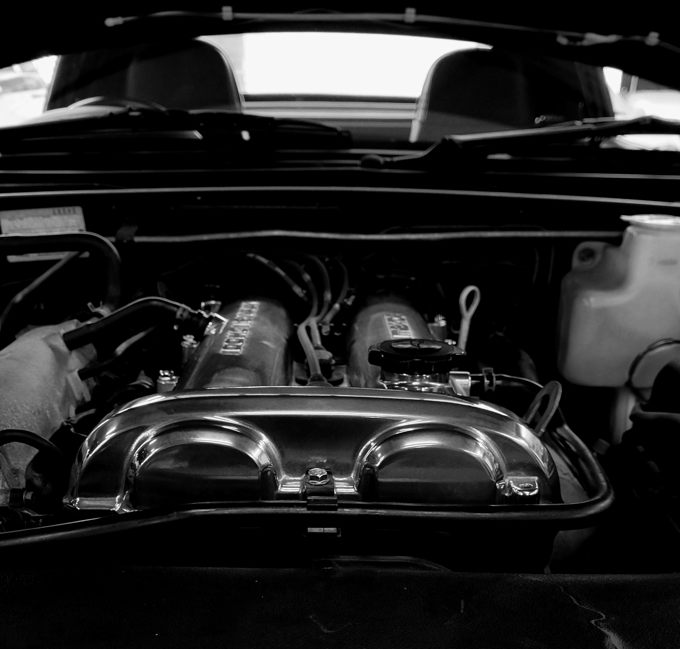 バレル研磨したヘッドカバーがカッコイイので……モノクロも渋いね。