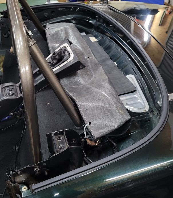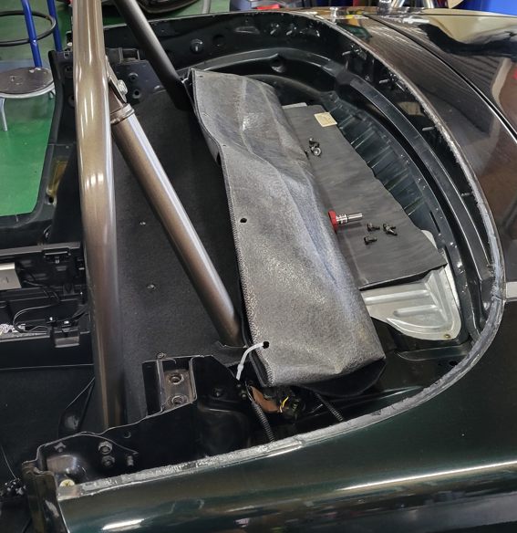 ドアメンテの後は幌交換です。リアトレイのマットを除去していないのはロールバーに貫通させているから……過去の自分の仕事です(笑)