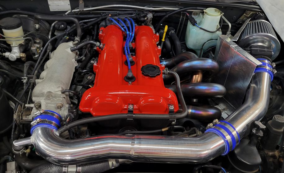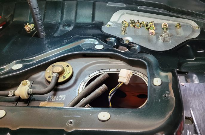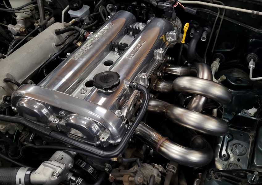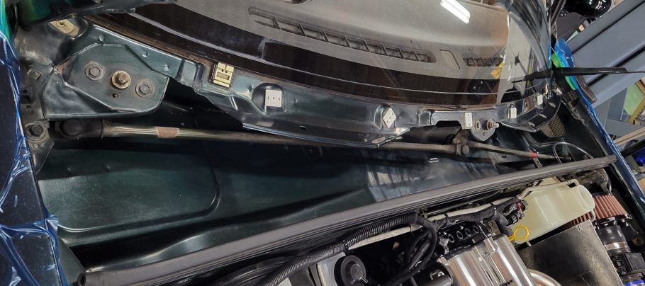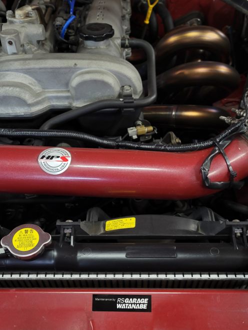 このクルマのエンジンルームです。今回最後の作業は……