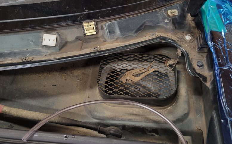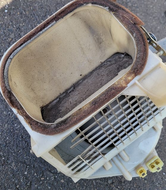 外気導入口です、ゴミが沢山あったとこね。この網の目が大きいのでゴミが入ると思われ。過去には3Dプリンターで型を作って自作エアコンフィルターを持って来た人がいましたが……ここにフィルター付けると風力が弱くなるんじゃないかな?エアコンユニットの直前が良いと思うけどNA、NBにはそんな隙間は無い。