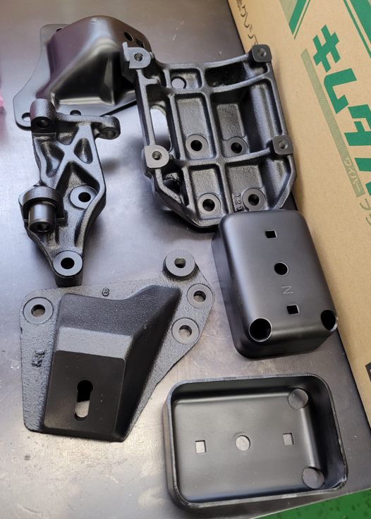 先日ブラストしたブラケット類。塗装したらイイ感じ~ ほとんどが見えない部品なんですけどね。ま、ジコマンですよ(微笑)