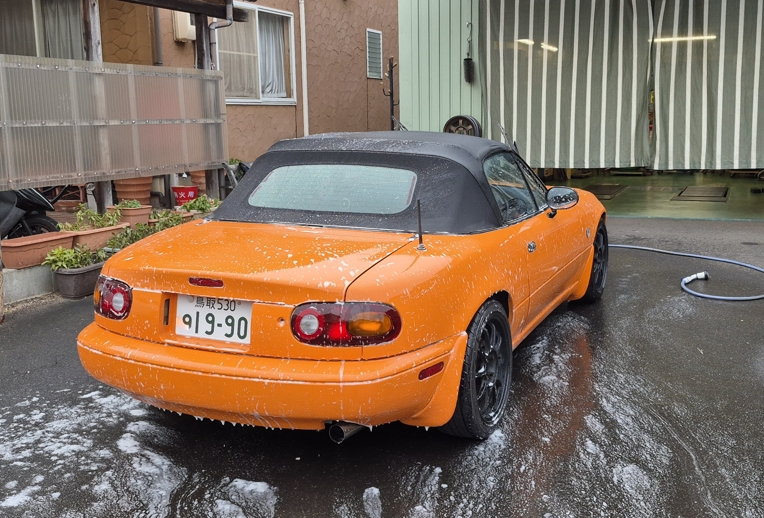 まずは洗車を。さて何が出てくるのやら……(オーナーさんも去年購入してほぼ乗っていないので状態を知らないという!)