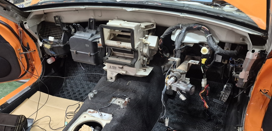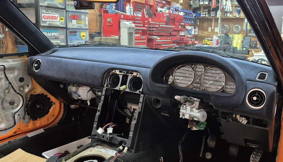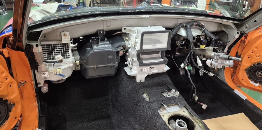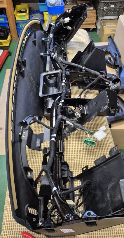 かなり苦労しました、ダッシュ降ろすだけで……この後は配線の解読と撤去です。純正の配線を切ってるところが多いのでキチンと直さないと。