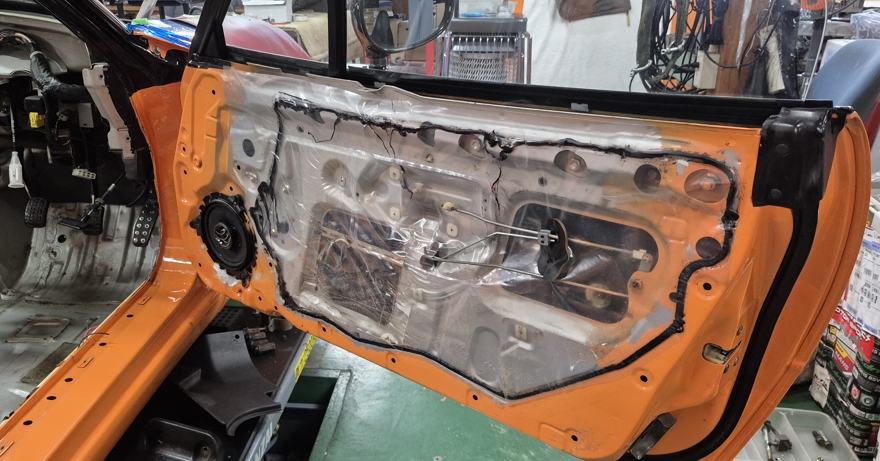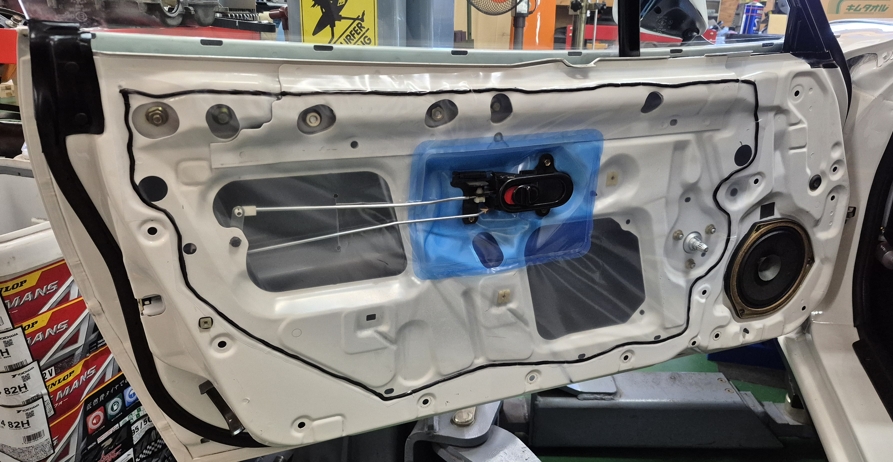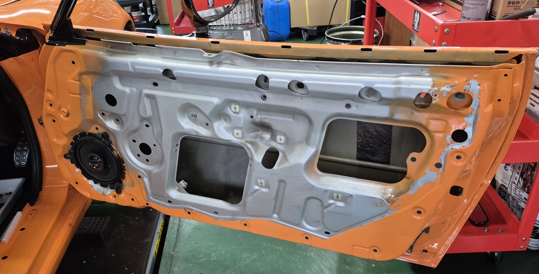 NA6前期なのでドアの中に補強がありません。ペラペラなドアですね!