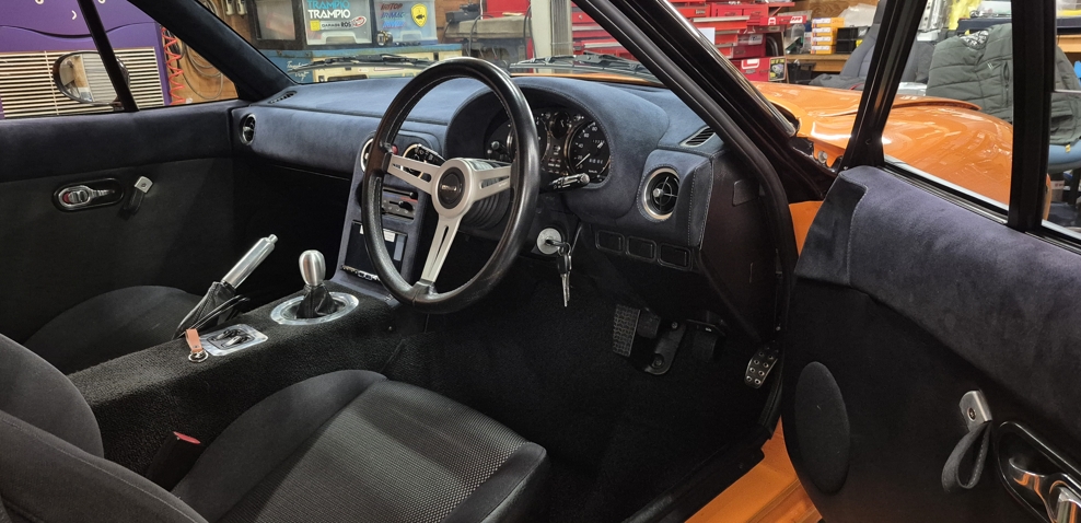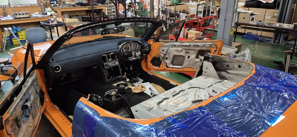 オレンジなNAはこんな感じ、この見た目がキレイになれば完成です! 幌とドアとダッシュ関連ですね。