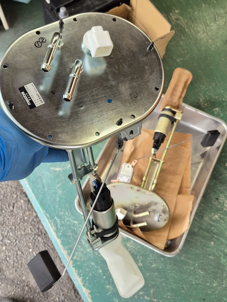35年も動いていた燃料ポンプ……眠っていた時間もかなり長かったと思われますが~ 新品にするので一安心かな。NA6は燃料ゲージも新品がでます、他のモデルは大抵廃盤ですが。NA6の部品が一番揃う気がする、マツダのレストアのおかげでしょう!