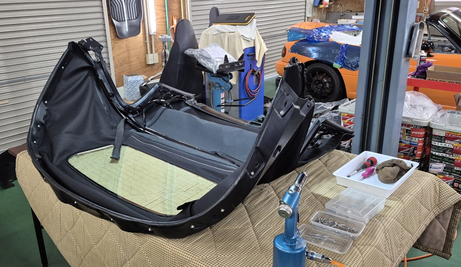 社外品の幌からNB純正クロスへ。社外品の幌の取付はミスがありました、このミスさえなければもうしばらく使えたと思いますが……NANBの幌交換はコツがいくつか必要なので慣れた人じゃないと難しいと思います。