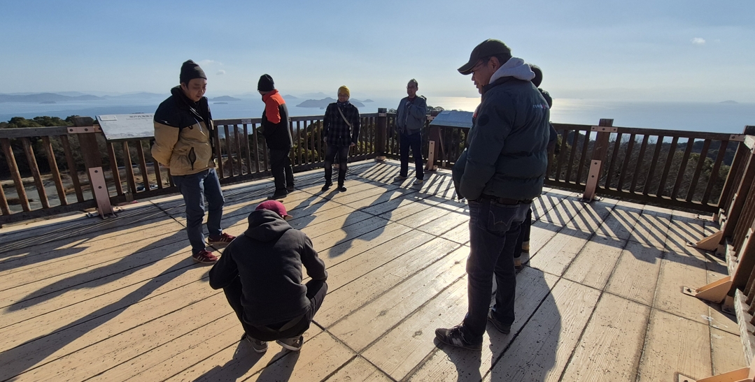 初めて来てくれたヒトもいて総勢10数台かな? 天気も良いので展望台に行こう!と言うことで(画面の左奥の建物)