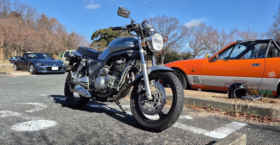 ロドスタ乗りですが今日はバイクで。SRX600とは渋いねぇ~ 昔、憧れたなぁ~ 「今日、来る時にタコメーターの針が折れましたわ!古いバイクは大変です!」と。やっぱ新しい方が良いな(笑) ポンコツ修理はロドスタだけで十分です。だからポルポルとバイクは新し目なモデルを選んでいるのですよ、直すことを考えずに乗りたいのです。