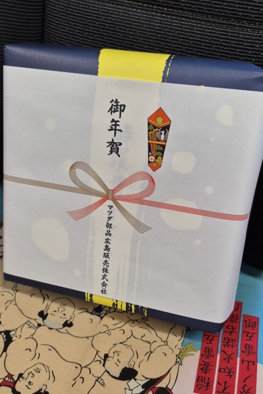 エビスさんファミリ~ 私はおチビさんに睨まれている?(笑) 広島の実家に帰省とのこと。エビスさんは大のカープファンなのでカープのカレンダーを進呈~