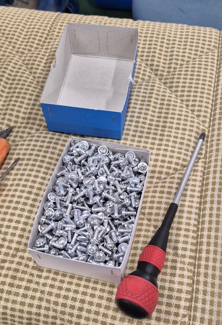 600個入りのビスは3箱目。2箱で1200個使ったとすれば……1台に30個使って40台分!まぁそのくらいはやってるよねぇ~30個までは使わないのでもっと多いかな~