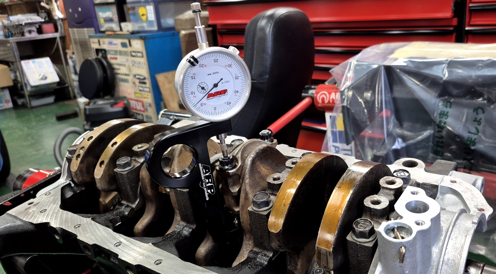 コンロッドは純正の中古ですがボルトはARPに打ち換えています。伸びの確認です、もちろんバッチリOK!