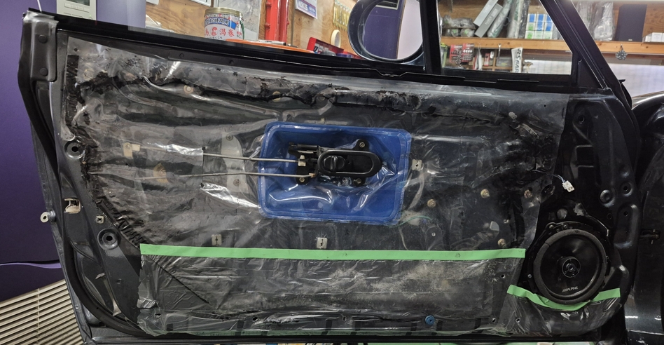 このクルマはドアメンテも行います……NBはなんでブチルが多いのか……NAに比べて確実に多いんです。