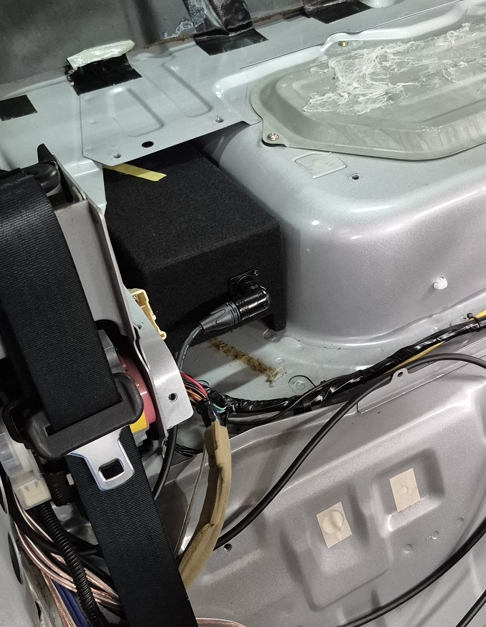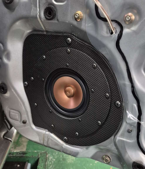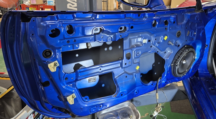 NBクーペにフルセットの取付です。私は事前にスピーカー線をドアに通しただけで残りの作業は全てヤマグチさんです。
