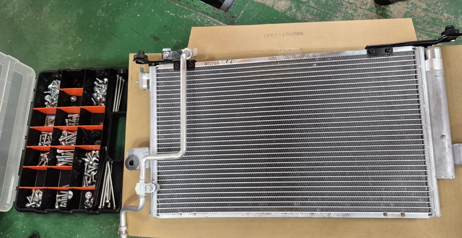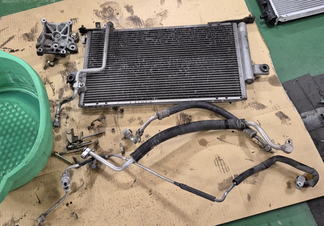 既存のエアコンパーツは全部撤去、フル新品、NDコンプレッサ仕様にします。