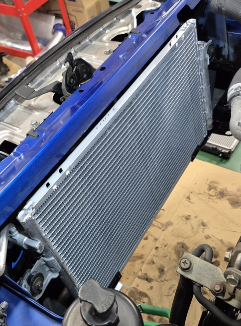 NBのコンデンサ交換はこのようにラジエタを外します、そこがNAに比べると手間ですね。外さなくてもできそうですが色んなところが傷もぐれになりそうなので安パイを取って外します。