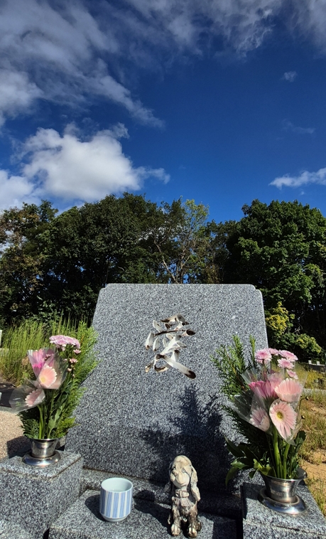 誰もいない墓地で少しの間、座っていました。小さな山というか丘の上なので生活の音は聞こえず……今日は心地良い風が吹いていましたね。日陰ならさほど暑くない感じ、秋が近づいて来たかな~
