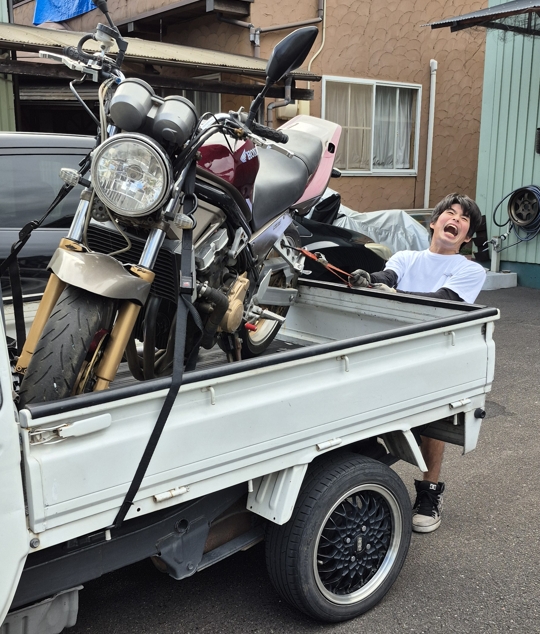 広島まで走る勇気は無さそうなので軽トラに積んで行くのか?(笑)