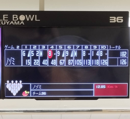 1ゲーム目は接戦! 4ピン差で負けた~ ストライクの数の差だなぁ~