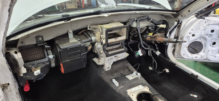 昼飯前になんとかここまで! この後、ワイパーモーターも撤去しました。