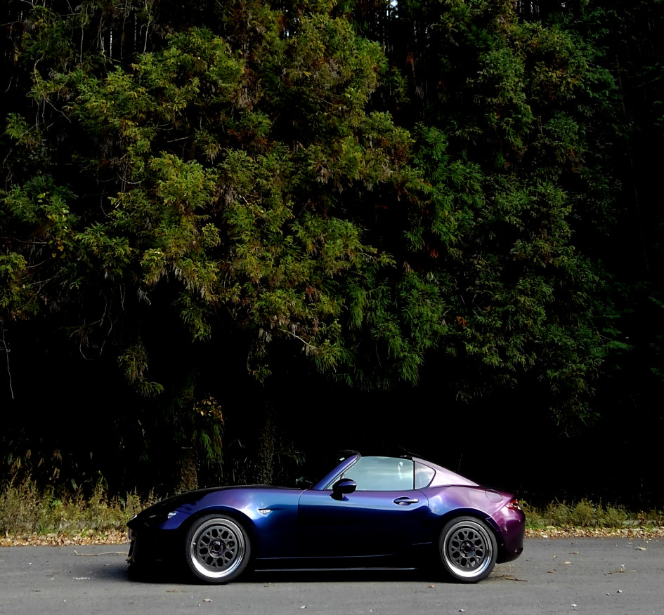 朝は不思議な色のRF、25歳の若者でした! ロードスターに乗るまでクルマに興味は無かったようですがRFを手に入れてMTの運転が楽しいと。ジムカーナに興味がありますとのこと。良いんじゃない!