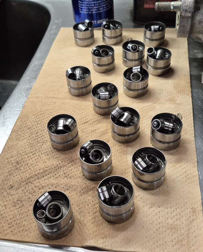 HLAは分解清掃組み直しです。今、新品は1個9000円弱なんです! 16個新調したら14万オーバーですよ! ビックリでしょ。ノーマルエンジンでもきっちりオーバーホールしたら100万超えると思います。