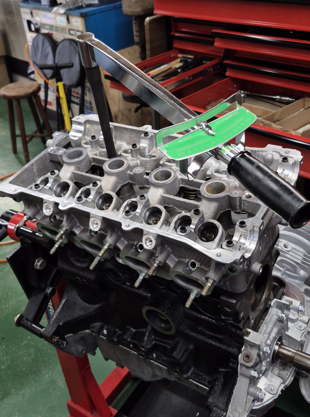 カムまで組みました。明日、タイミングベルト類が入荷するはずなので組み上がるかな?