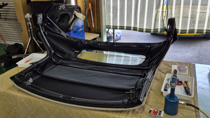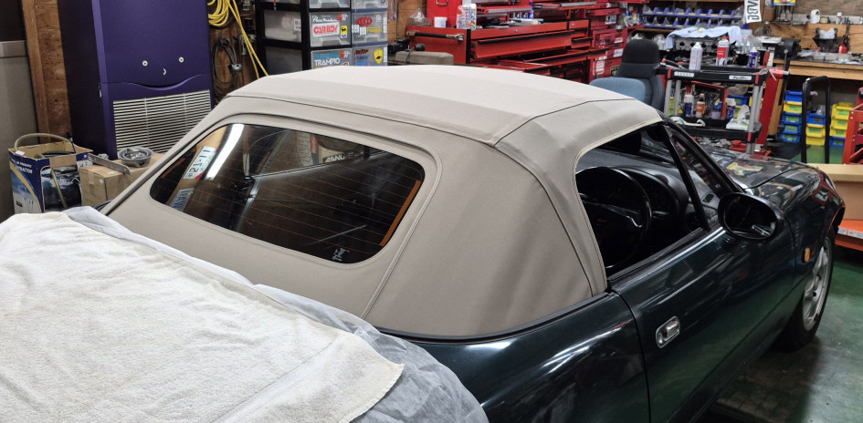 とりあえず幌生地の交換を済ませました。明日、クルマを引き取りに行く予定~