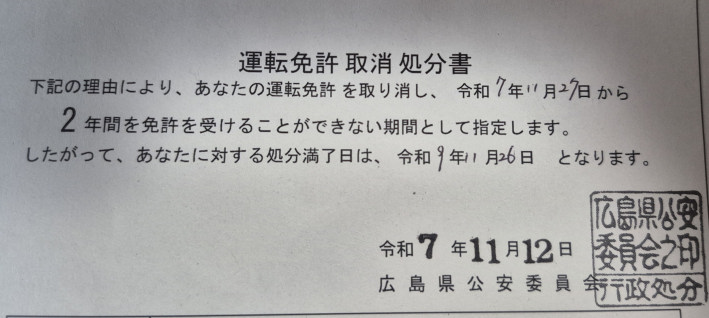 免許証を没収されました~ 16歳で原付を取って、すぐに自動二輪(中免)を取得、去年の3月から250のバイクに乗っていましたが……全て乗れなくなりました。