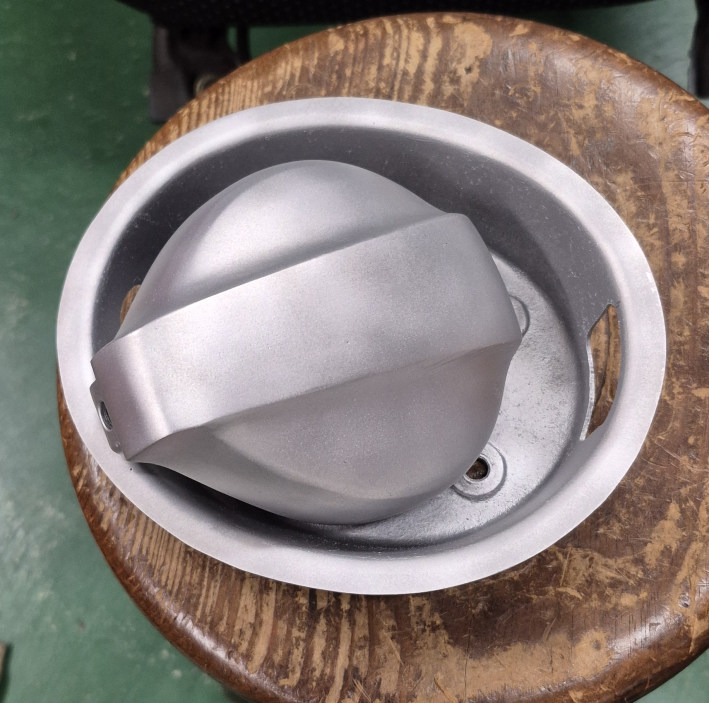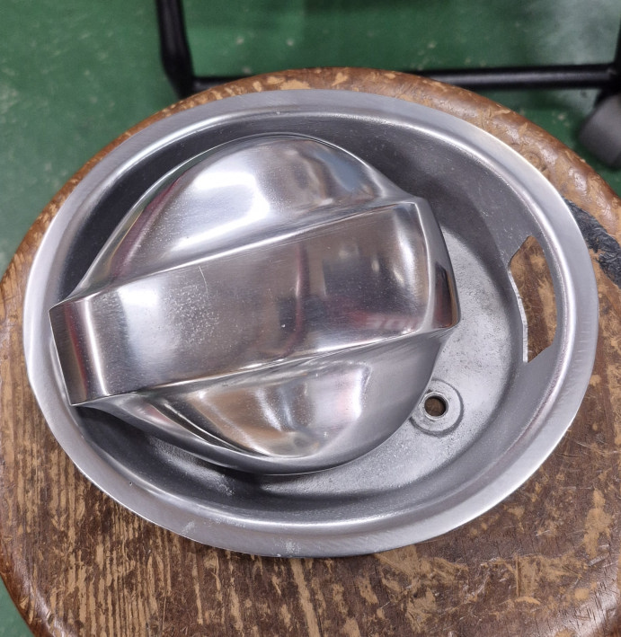 ポンコツ号に装着されていた給油口。ウエットブラストしたらこんな感じ。