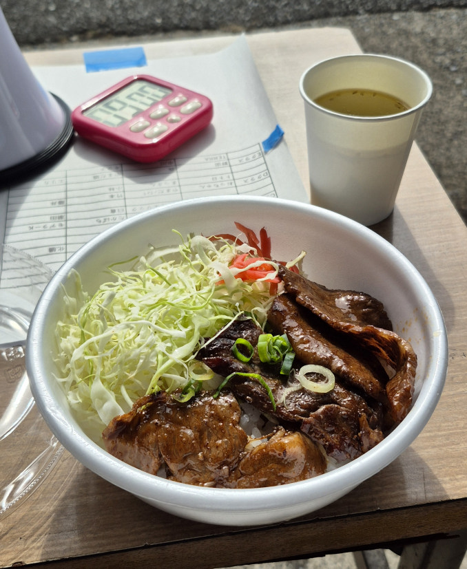 お昼ごはんはキッチンカー。焼肉丼! めちゃ美味かった!! 大好評でした~ 次回もぜひお願いしたい。