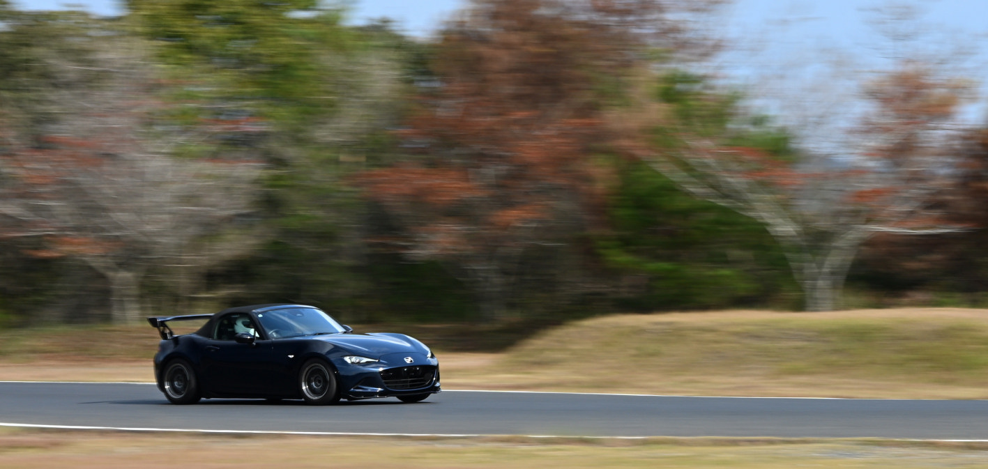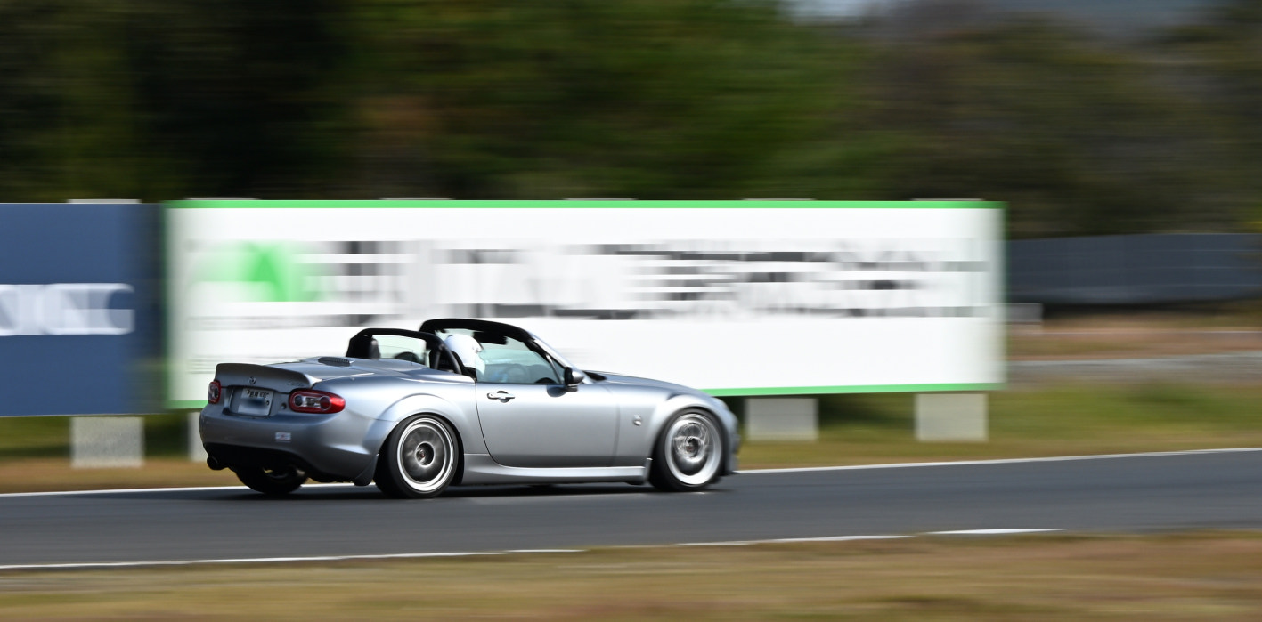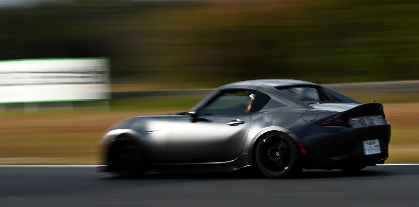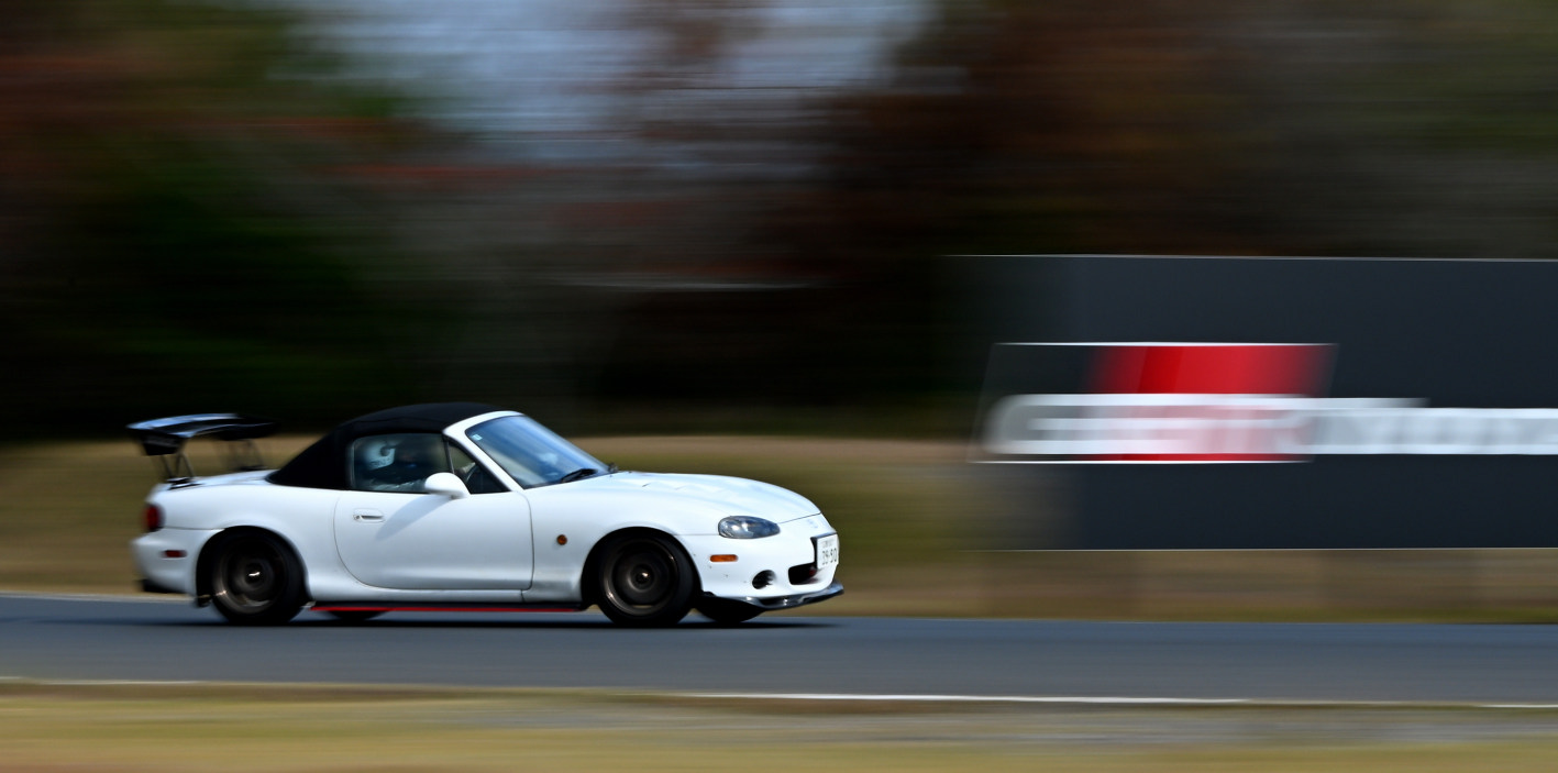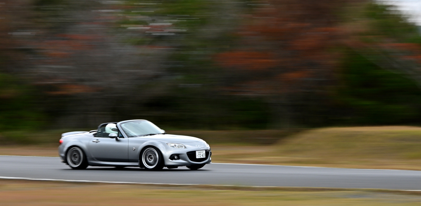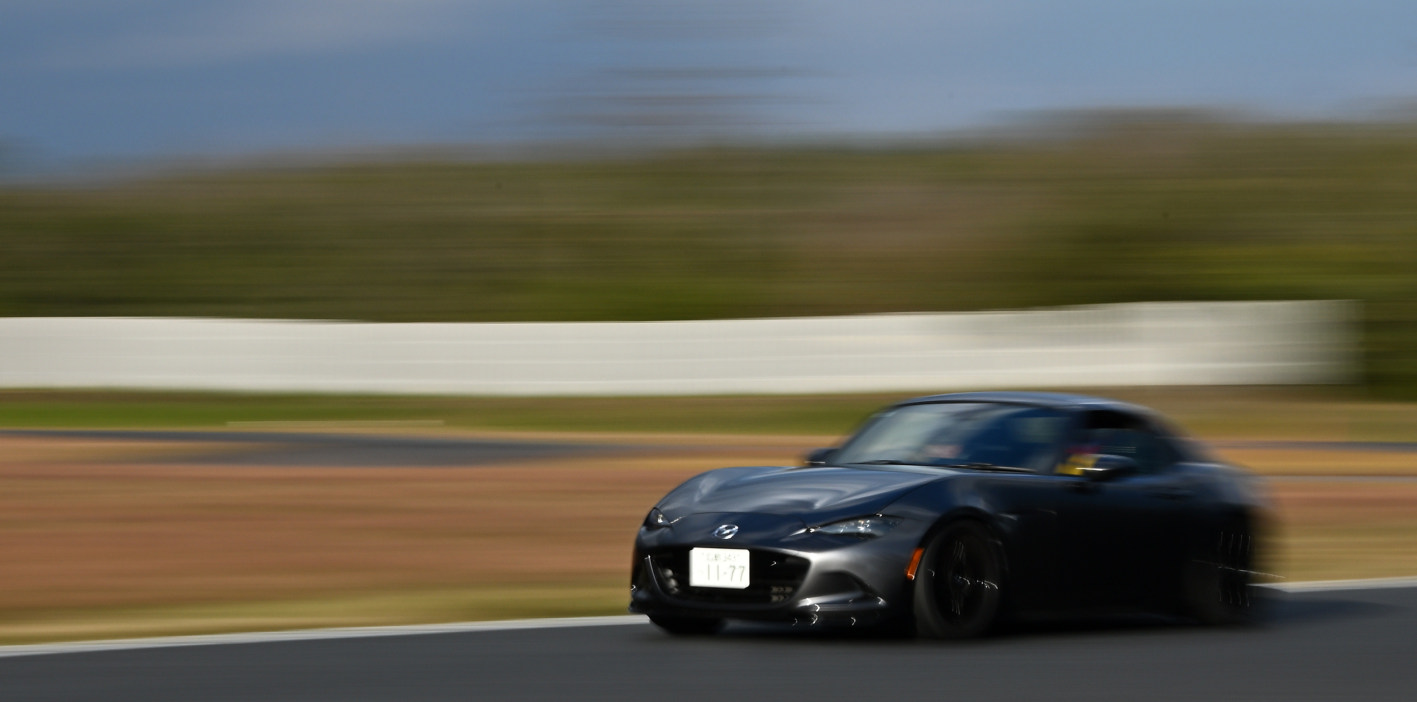 1/30秒です。偶然手前のコースを通り過ぎたクルマがありました。 流し撮りならではの面白さかなと。