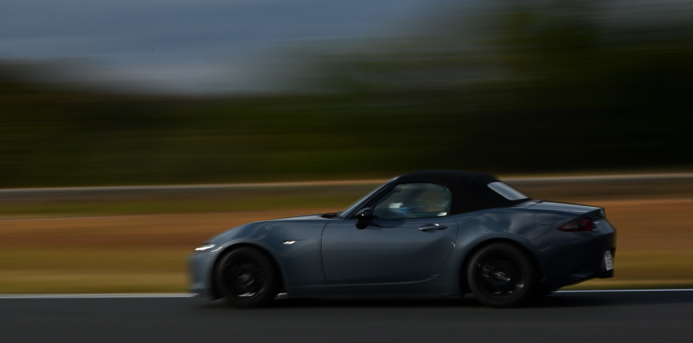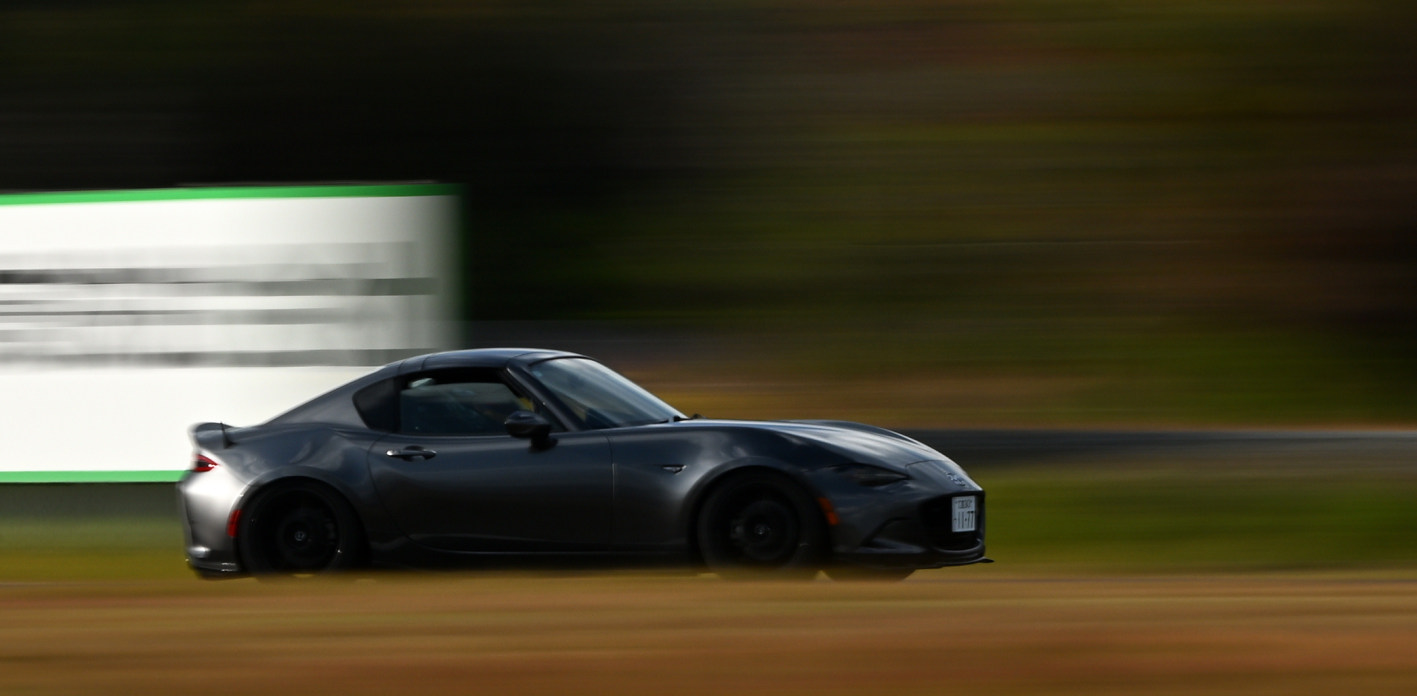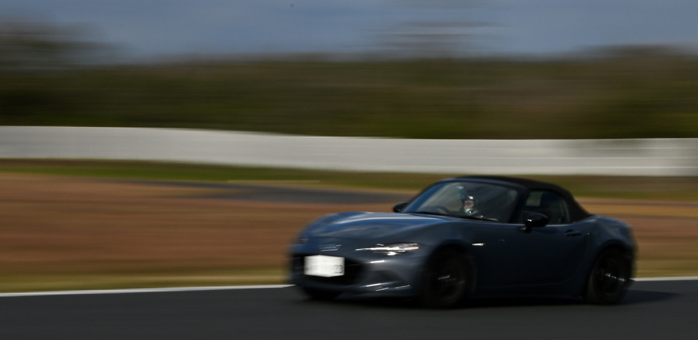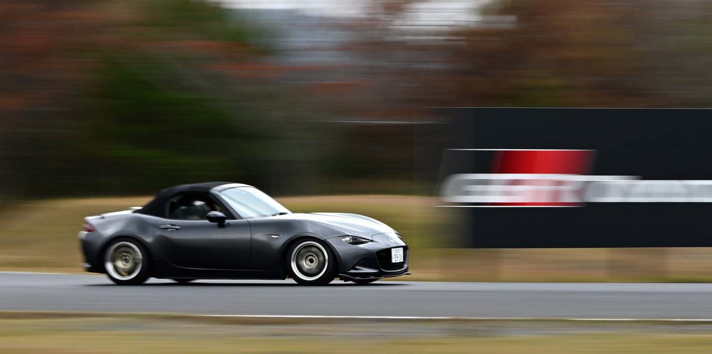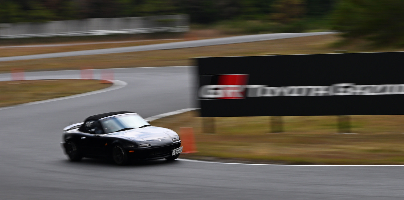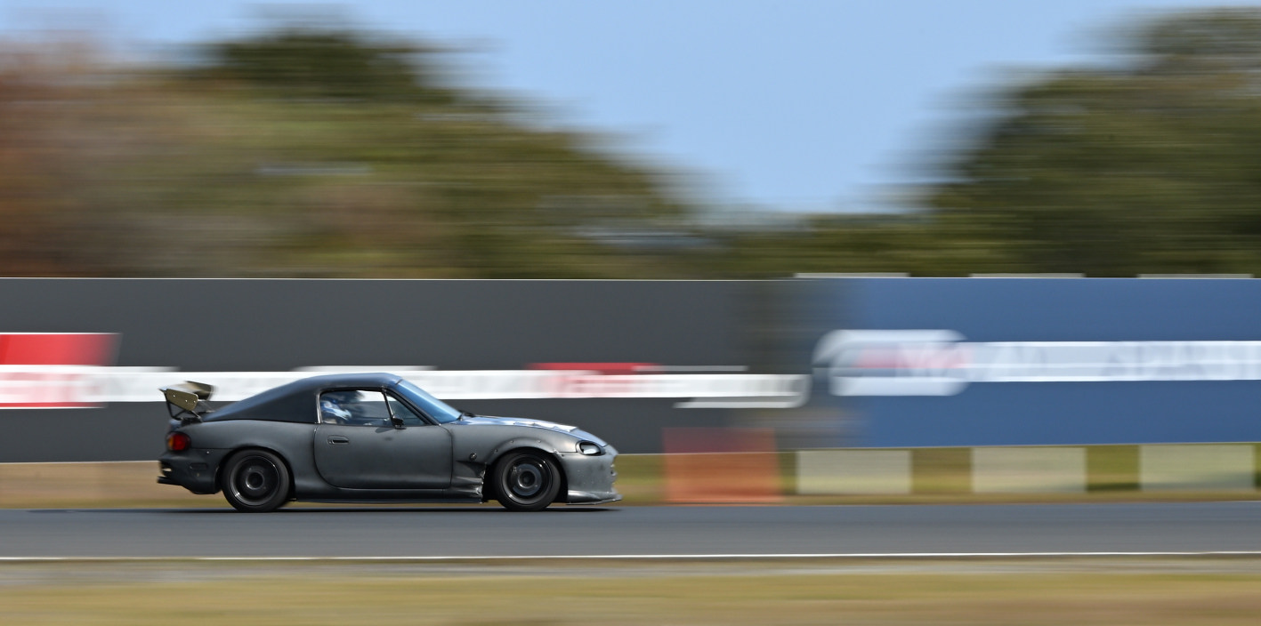 1/30秒です。偶然手前のコースを通り過ぎたクルマがありました。 流し撮りならではの面白さかなと。