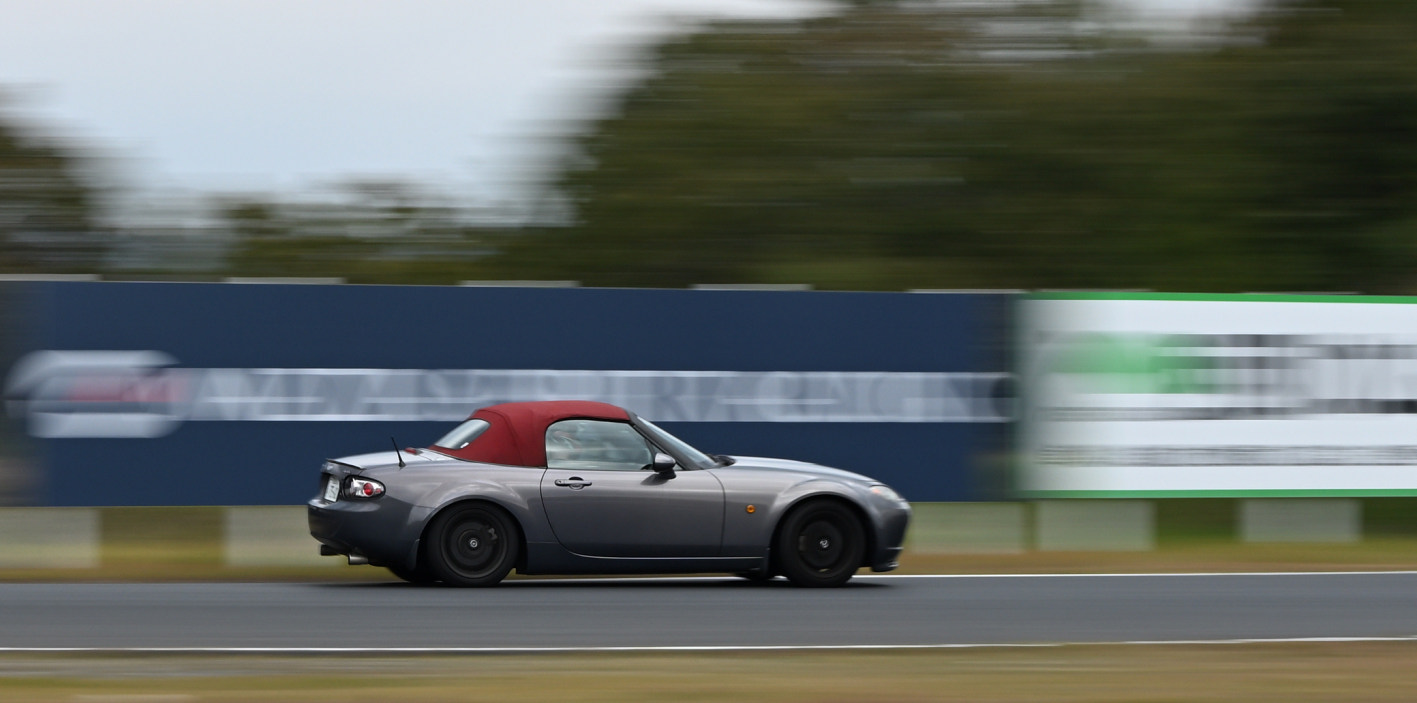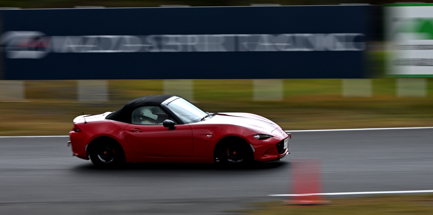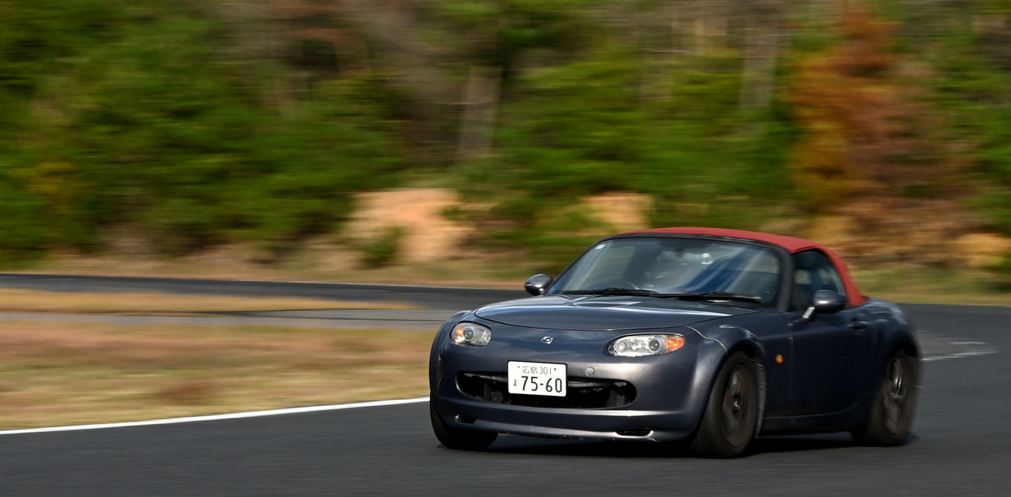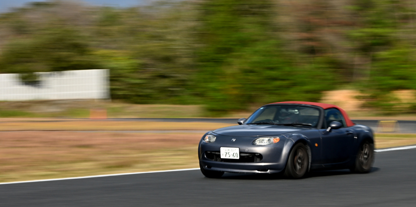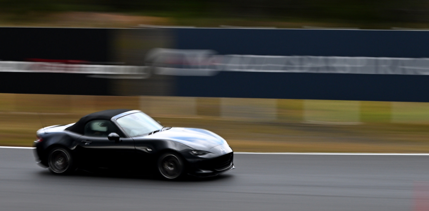 1/30秒です。偶然手前のコースを通り過ぎたクルマがありました。 流し撮りならではの面白さかなと。