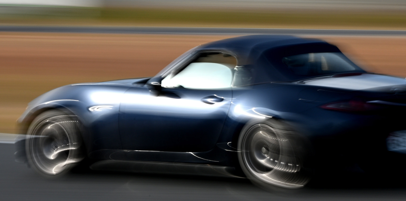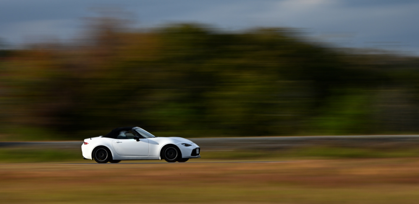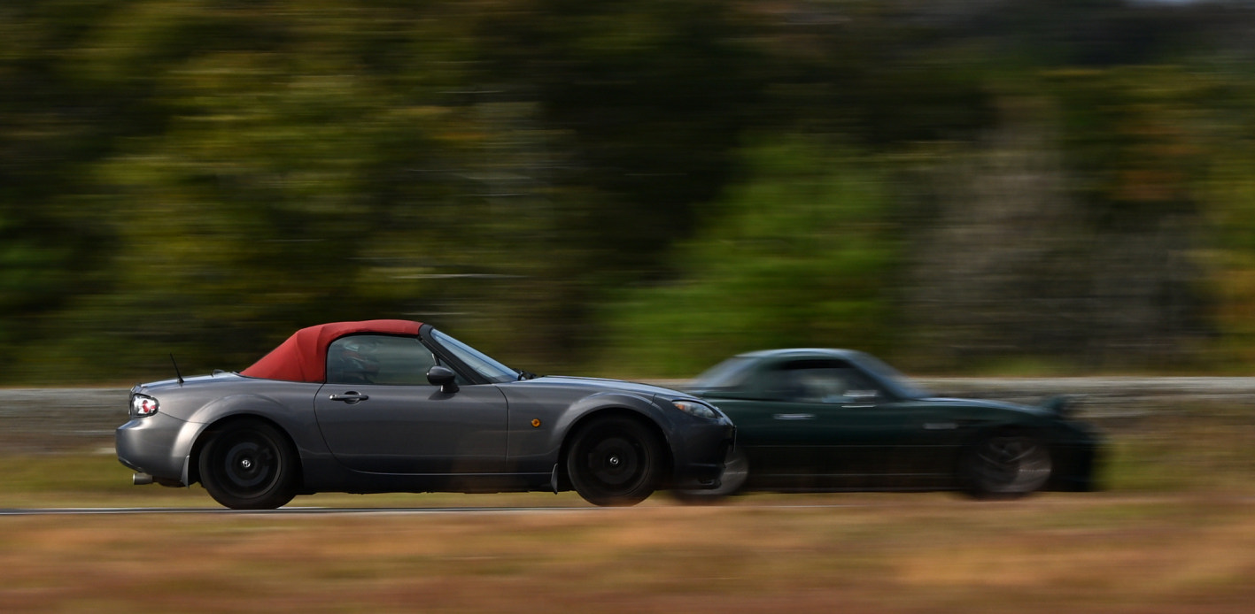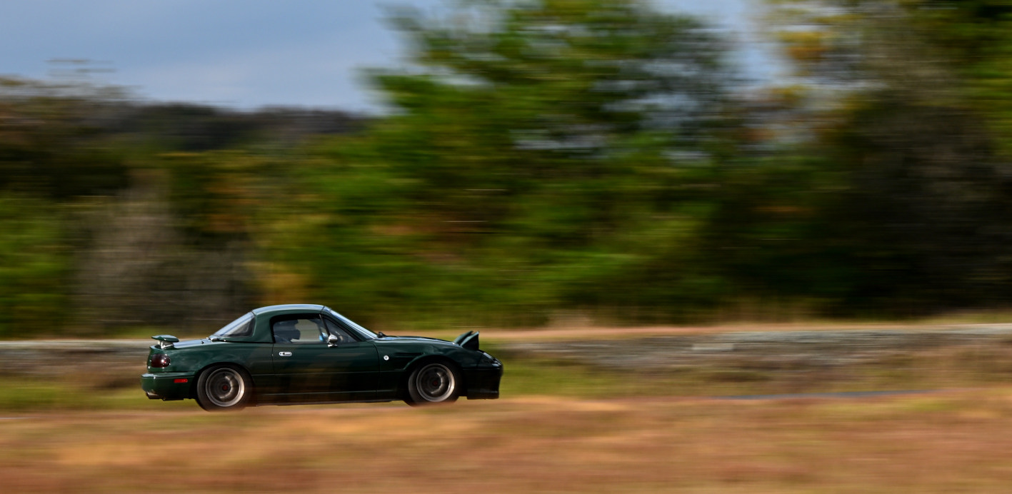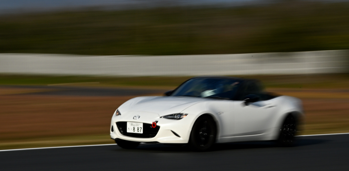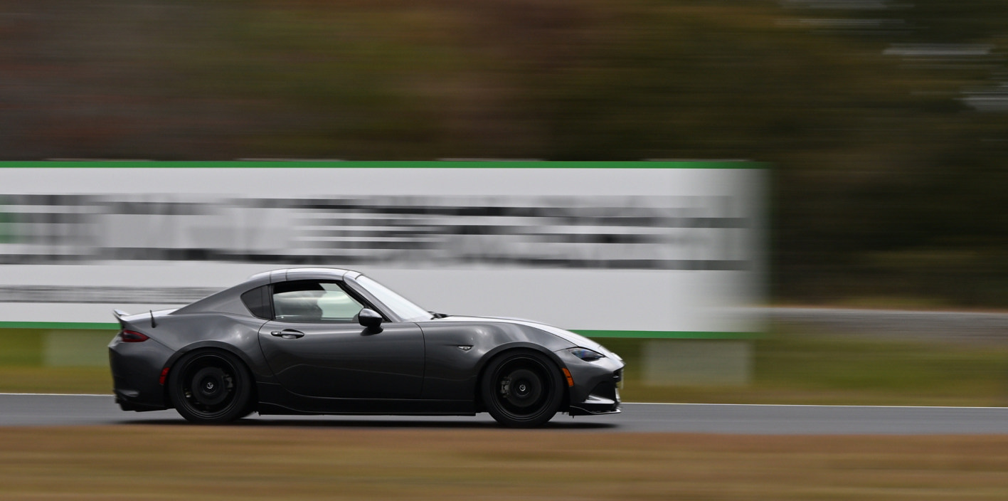 1/30秒です。偶然手前のコースを通り過ぎたクルマがありました。 流し撮りならではの面白さかなと。